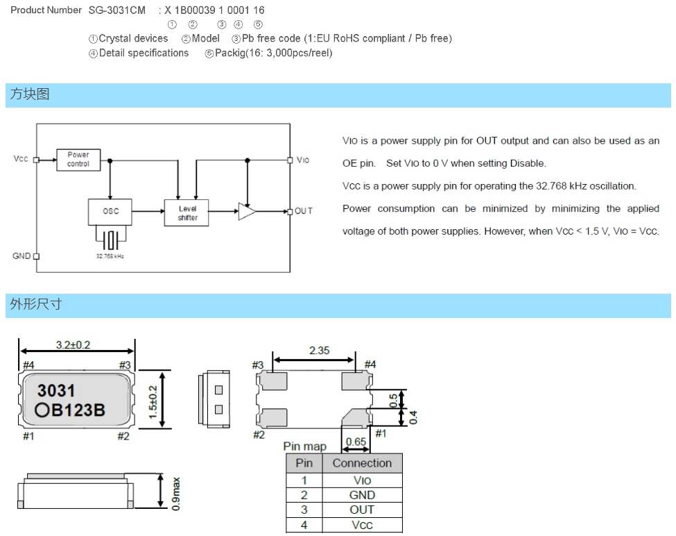 今天給大家介紹愛普生新推出的一款低壓且有固定頻率的晶振SG-3031CM。SG-3031CM是一款32.768K有源晶振,大家都知道32.768kHz一般無源晶振較多,而SG-3031CM類似于SG-3030CM,同屬于32.768K有源晶振,工作溫度寬至-40°C至+105°C。SG-3031CM兼容CMOS芯片技術,具有優化的CMOS IC設計,最大0.65uA的低功耗,可以有效減少電流消耗。內置的32.768 kHz晶體單元可實現無調整的高效運行。電源電壓范圍從1.2V至5.5V,這也是SG-3031CM一個特點,相比于3030CM,SG-3031CM可以在更低的電壓下運行,SG-3031CM晶體振蕩器,采用標準3215小尺寸封裝,四個焊接腳位,SG-3031CM可以應用于工業,安全,智能電表,用于計時和睡眠功能的時鐘。下面南山電子就給大家分享最新SG-3031CM中文規格書,以便大家選型參考:
