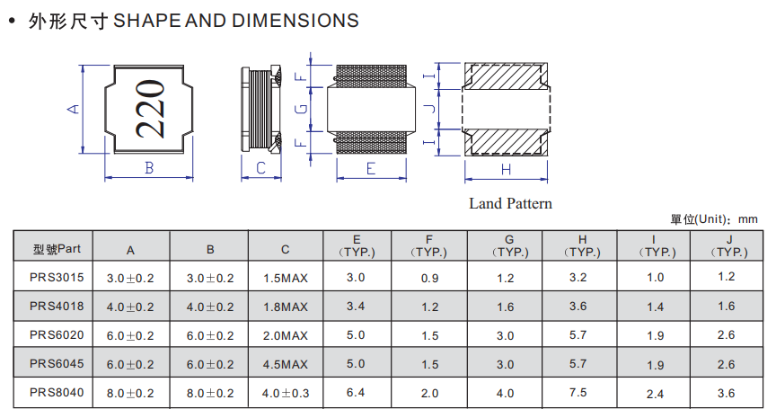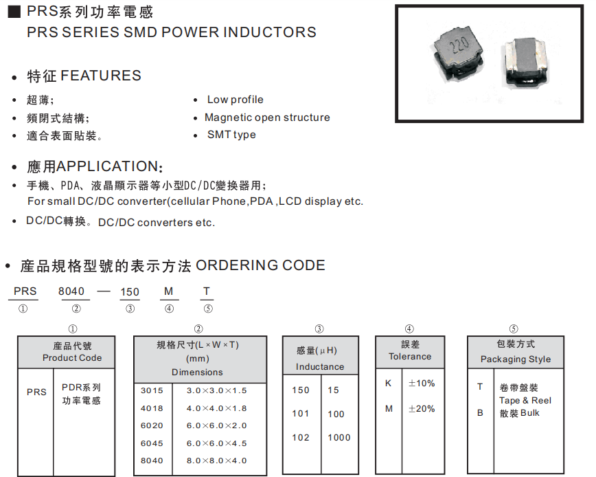 風華PRS貼片功率電感,PRS功率電感規格選型資料