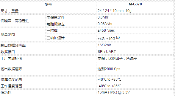 慣導模塊M-G370來說,新開發的加速度計也大大提高了零偏穩定性(達到6 uG),初始零偏誤差為2 mg (1σ)。搭載新開發的